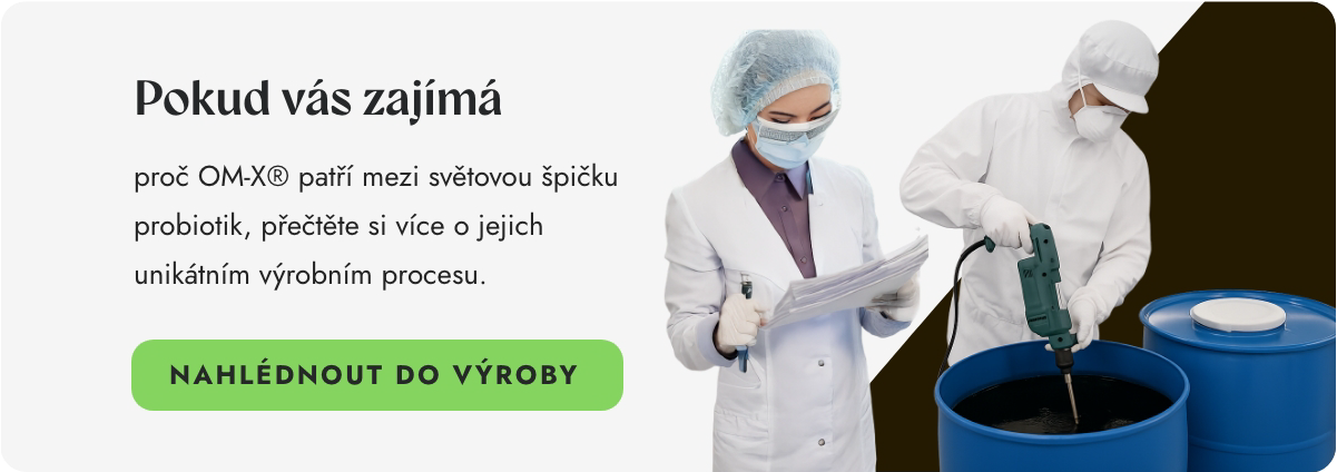 Práve postbiotiká sú jedným z výrazných rozdielových parametrov v porovnaní s inými probiotickými výživovými doplnkami a sú tak oprávnene na popredných miestach našej argumentácie. Postbiotiká sú vedľajším produktom života a metabolizmu probiotických baktérií. Môžeme povedať, že sú to hlavné účinné látky mikrobiomu, ktoré sú produkované priateľskými baktériami. Stoja za veľkou časťou prínosu prospešných baktérií. Pri OM-X® nemusíte čakať, kedy alebo či budú skonzumované probiotiká schopné nejaké postbiotiká vyprodukovať. Postbiotiká sú prítomné v kapsule, pripravené poskytnúť vám prakticky okamžitý účinok.