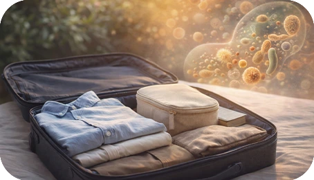 Malé, skladné balenie, ktoré nezaberie žiadne miesto v kufri ani kabelke a je ideálne na cesty. Môže výrazne pomôcť pri tráviacich ťažkostiach spôsobených zmenou stravy, prostredia alebo denného režimu. Zároveň je mini balenie skvelou voľbou na krátkodobú podporu črevnej mikroflóry počas užívania antibiotík, keď je mikrobióm vystavený zvýšenej záťaži. Praktické riešenie pre situácie, keď potrebujete cielenú podporu bez nutnosti dlhodobého užívania.